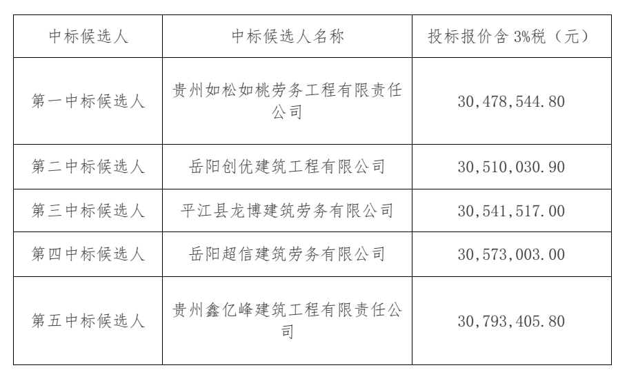 公示期:2026年 1月 23日始至2026年 1 月 25 日24时止(北京时间)。公示期间,投标人和其他利害关系人如有异议,应按照岳阳路桥集团有限公司《内部招投标采购实施办法》(岳路司发〔2025〕40号)提出异议或举报。公示期满对中标单位若无异议,招标人将从第一中标候选人开始依序进行合同谈判,选取前三名为该项目的中标人。