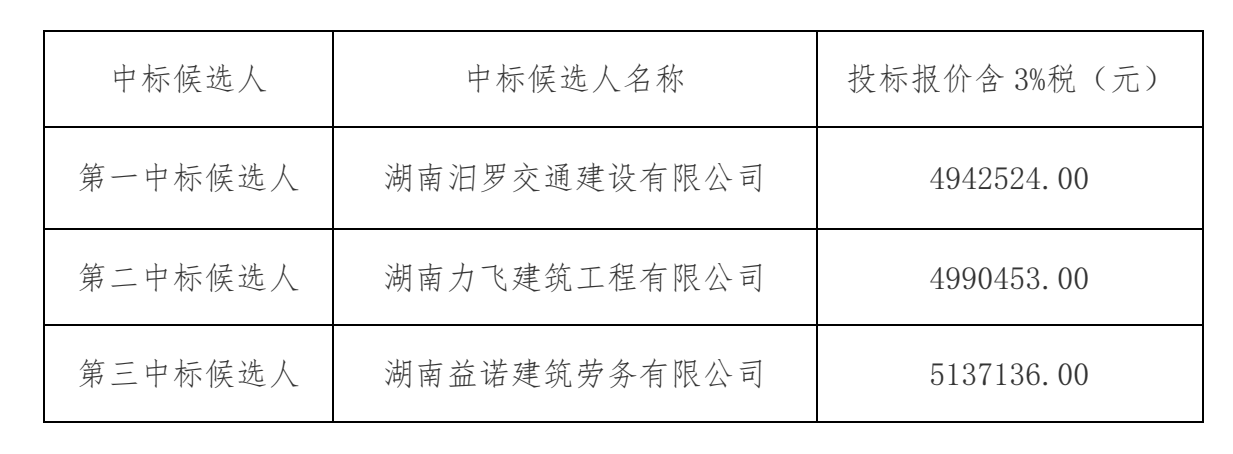 岳阳路桥集团有限公司于2026年3月5日(北京时间)在集团公司六楼对岳阳路桥集团有限公司G536汨罗市蔡屋章至龙塘段路基工程施工劳务分包工程进行了内部公开招标、开标、封闭评标。在集团公司成本管理部、纪检监察部、二分公司全过程监督下,评标委员会按照招标文件确定的评标办法进行了细致的评审,并推荐中标候选人排名如下: