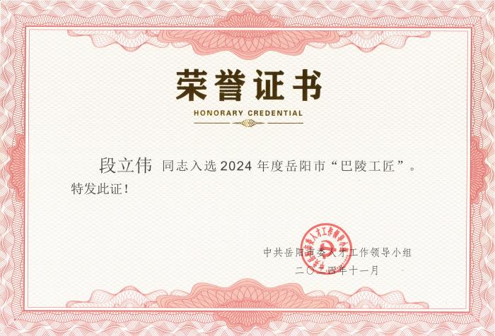 岳阳路桥集团职工段立伟入选“巴陵工匠”
